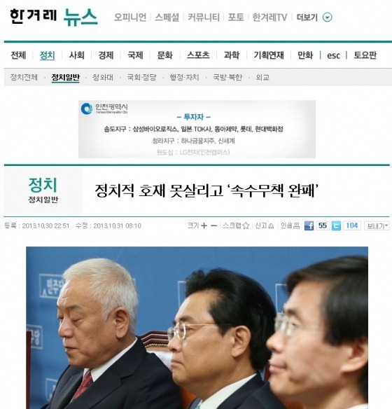 또 이 신문은 “민주당이 당면한 가장 큰 문제는 지도력 부재”라며 “재보선의 정치적 의미를 정확히 자리매김하고 이에 합당한 전략전술을 개발하고 당의 총체적 역량을 투입해야 할 임무를 방기했다. 정권심판론도 아니고, 인물론도, 지역발전론도 아닌 무대책의 선거에서 참패한 것은 너무나 당연한 결과”라고 민주당의 총체적 무능을 비판했다. 결국 민주당 김한길 체제에 직격탄을 날린 셈이다.