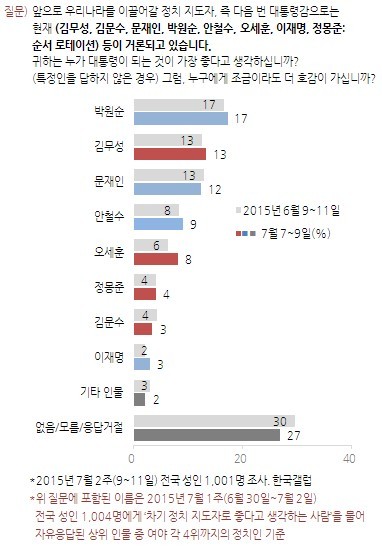 조원씨앤아이 등 다른여론조사 기관이해도 저 차기대권주자