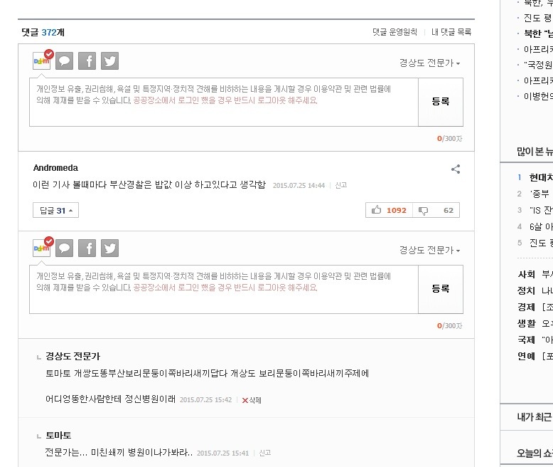 아주오랬만에 1년만에 개상도똥부산 범죄하나 다음에 메인에 하나올라와서