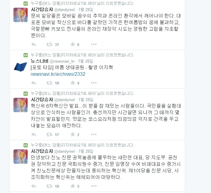 지지자들인 인터넷 트윗질하고 돌아다니는데