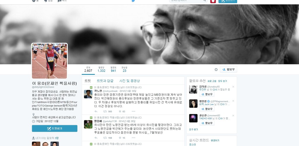 평상시에 프로필에 김대중달고 노무현달고 트위터에서