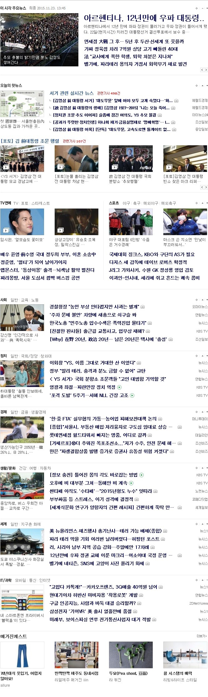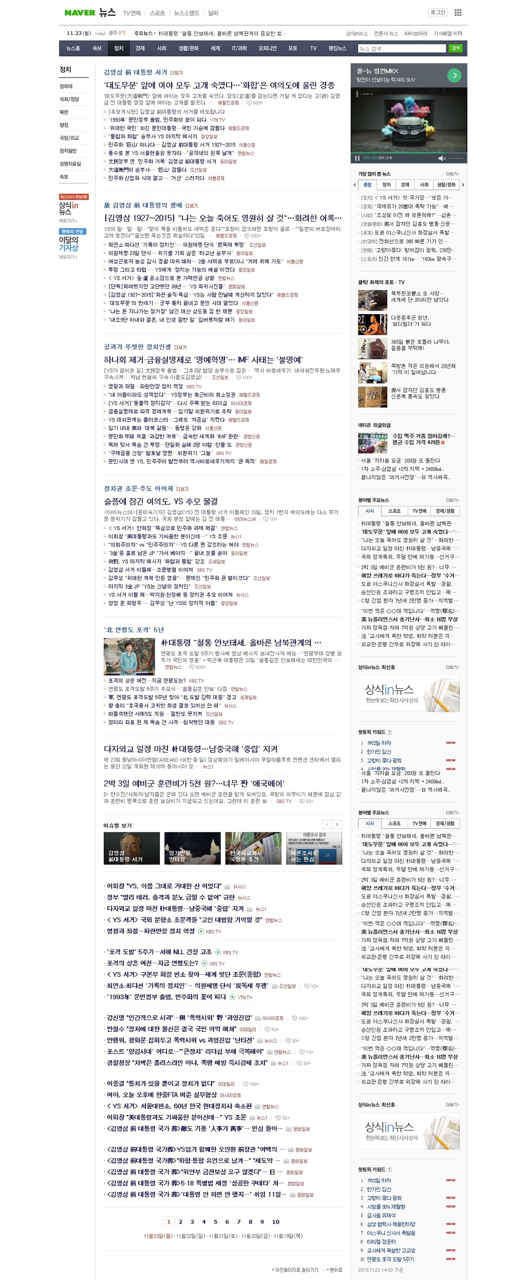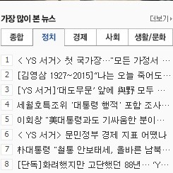 정치는 대부분 김영삼사망소식관련기사 올려놓고 ㅋ