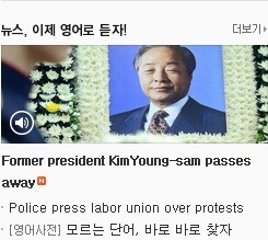 심지어 김영삼  영어기사에도 뉴스 메인 오른쪽에 올려놓고 ㅋ