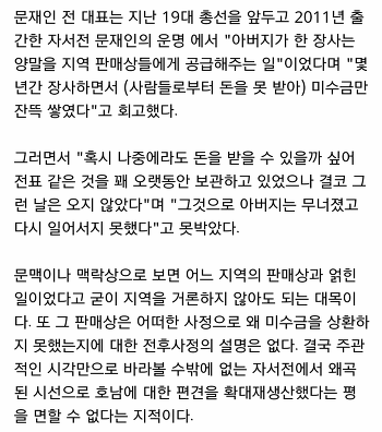 자신의 정치적 본색이 이러함에도 문재인은 적반하장을 정당화하려는 울먹임 연기를 구사해 가며 거듭 "호남이 듣기에 섭섭한 말을 했을 수도 있으나 결단코 호남 홀대는 없었으며 오히려 역대 어느 정부보다 호남을 배려했다고 자부한다"는 말로 호남 자존심 죽이기 입방망이질을 멈추지 않았다.